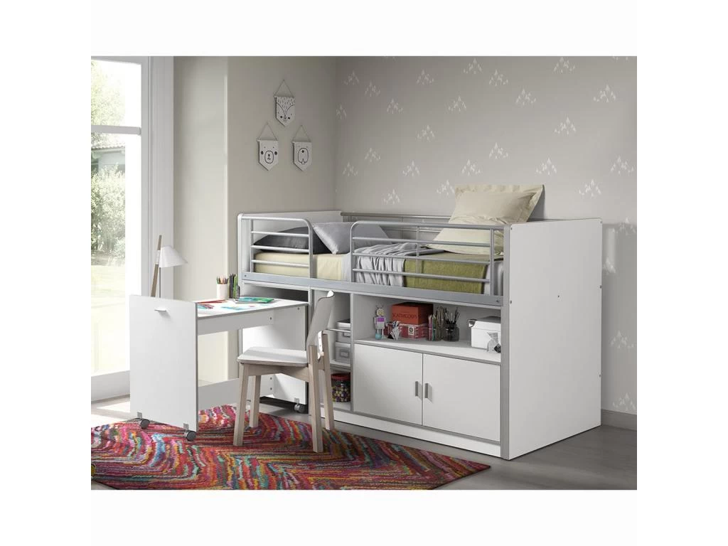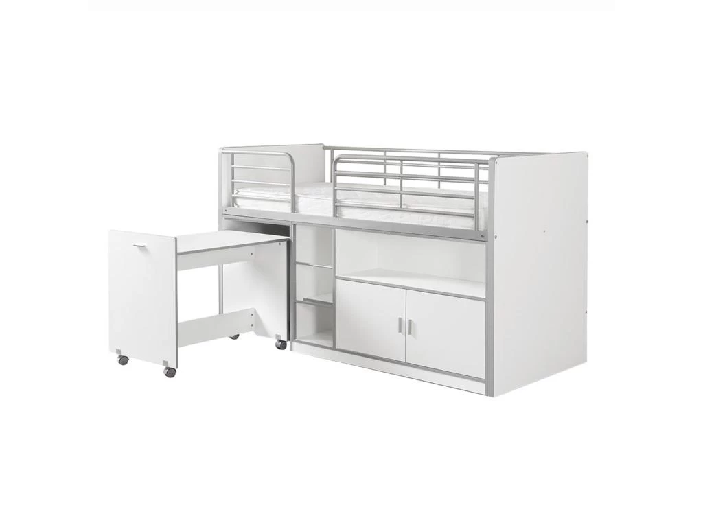 Lit Combiné Multi-Rangement 90x200cm Blanc avec Bureau Amovible sur Roulettes de la gamme Baymax.