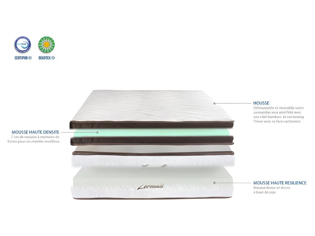 - Déhoussable : Topper Oui – Matelas Non