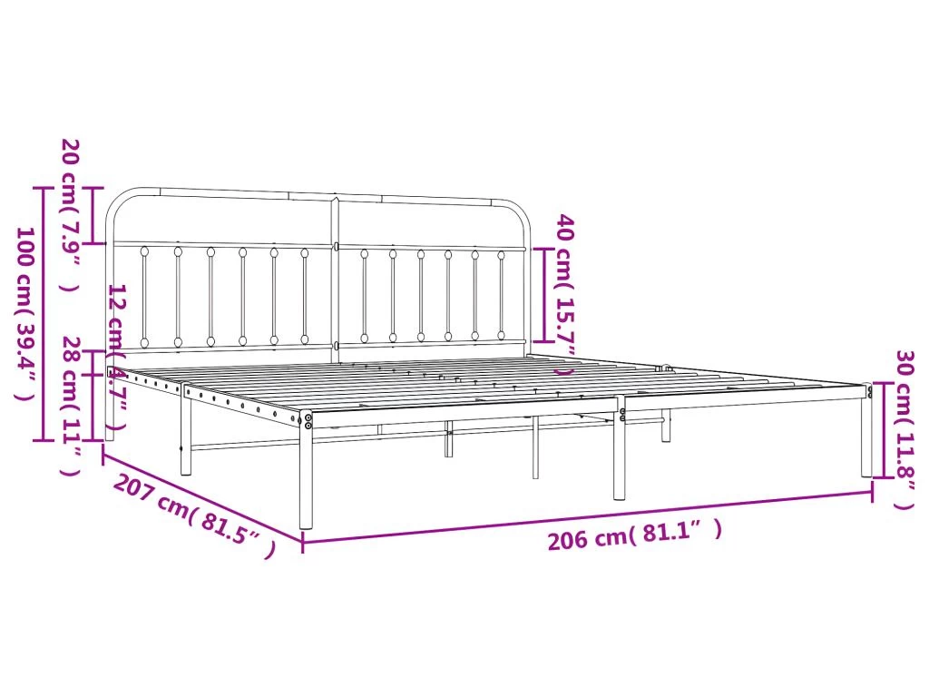 - Lattes et pieds en métal : le cadre de lit en métal est équipé de lattes en métal et de pieds centraux pour offrir à votre matelas le soutien et la respirabilité dont il a tant besoin.