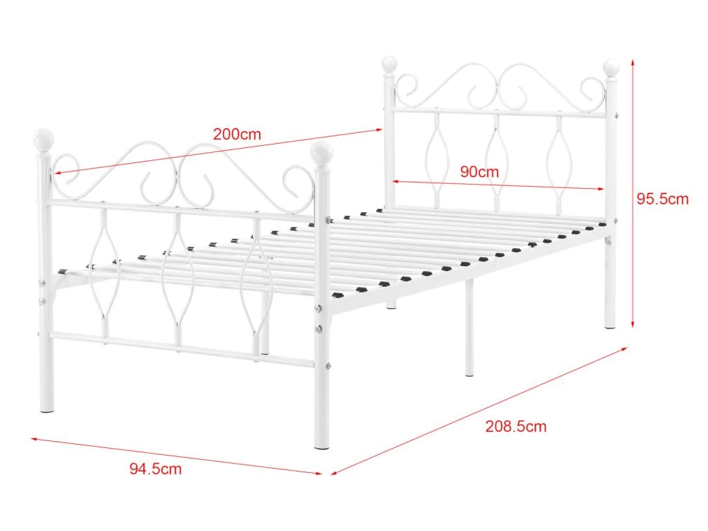 Ce cadre de lit en métal est une construction pratique et solide. Doté des lattes métalliques, il vous offre un support optimal et assure le confort durant le sommeil.