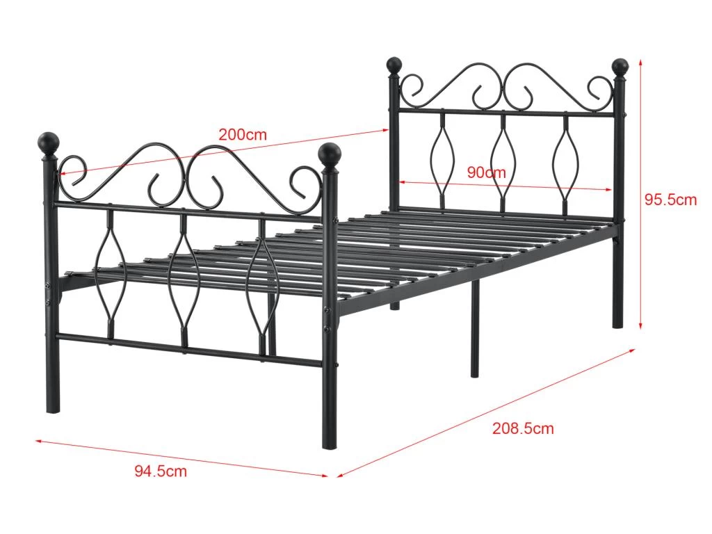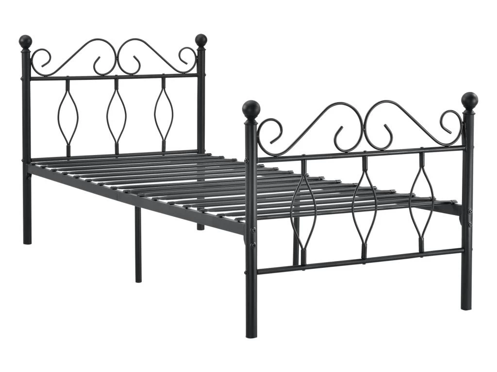 Ce cadre de lit en métal est une construction pratique et solide. Doté des lattes métalliques, il vous offre un support optimal et assure le confort durant le sommeil.