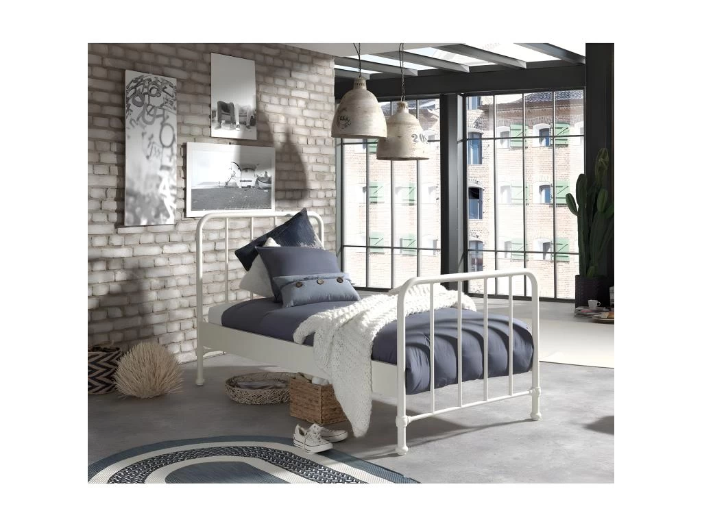 Lit à Barreaux 90x200cm Métal Poudré Blanc de la gamme Chicago.
