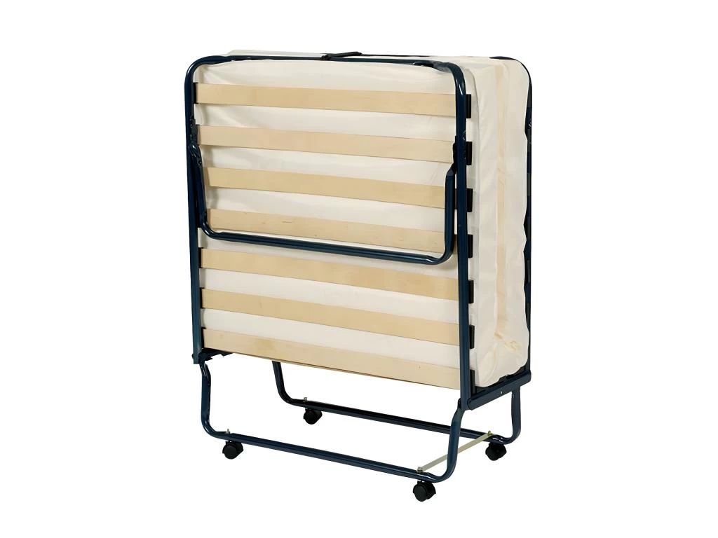 Lit pliant à Roulettes 90x190cm Confort. Un couchage d’appoint extrêmement pratique. Le sommier pliable est fourni avec un matelas. Une fois son utilisation terminée, il ne reste qu’à le plier pour le ranger. Les roulettes incluses permettent un déplacement sans effort.