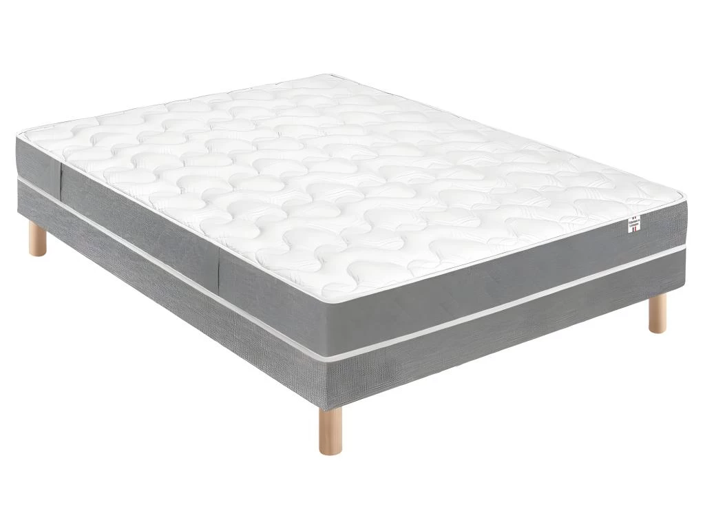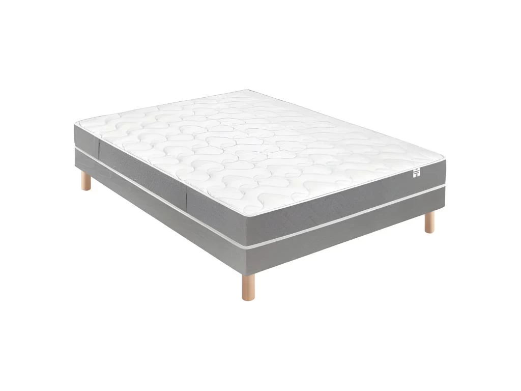 Associé au sommier Base Confort Ferme de 15 cm à lattes massives recouvertes, profitez d’une ensemble matelas + sommier mousse au confort progressif et au look moderne.