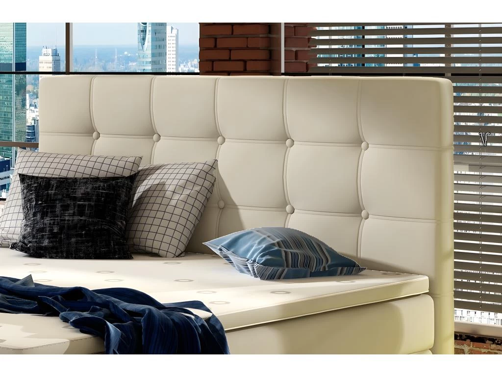 Ce lit de type boxspring, avec un matelas haut et une structure spacieuse et rembourrée. Dispose d’un matelas à ressorts bonnell d’une hauteur de 20 cm, équipé de couches supplémentaires – haut et bas, en mousse T25 souple et d’un surmatelas en mousse T21 d’une épaisseur de 4 cm. Le rembourrage se traduit par un confort maximal pendant le sommeil et un soutien adéquat et stable du corps et un soulagement de la colonne vertébrale. Le lit dispose d’un espace de couchage disponible dans plusieurs dimensions, assurant liberté et confort de repos.