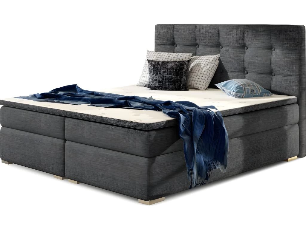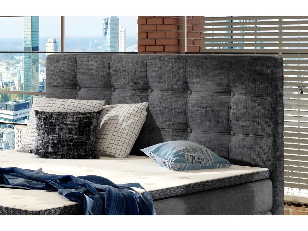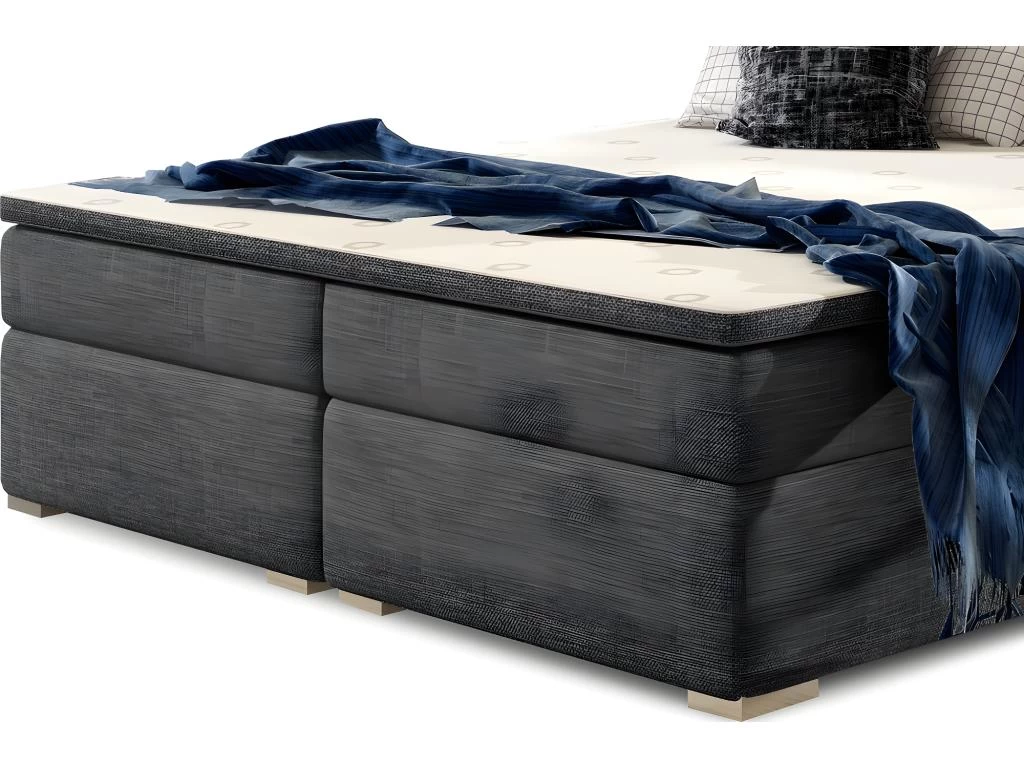 Ce lit de type boxspring, avec un matelas haut et une structure spacieuse et rembourrée. Dispose d’un matelas à ressorts bonnell d’une hauteur de 20 cm, équipé de couches supplémentaires – haut et bas, en mousse T25 souple et d’un surmatelas en mousse T21 d’une épaisseur de 4 cm. Le rembourrage se traduit par un confort maximal pendant le sommeil et un soutien adéquat et stable du corps et un soulagement de la colonne vertébrale. Le lit dispose d’un espace de couchage disponible dans plusieurs dimensions, assurant liberté et confort de repos.
