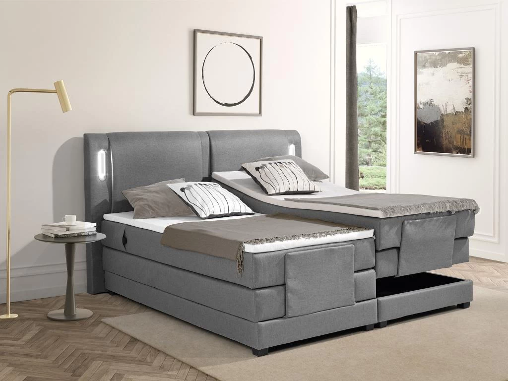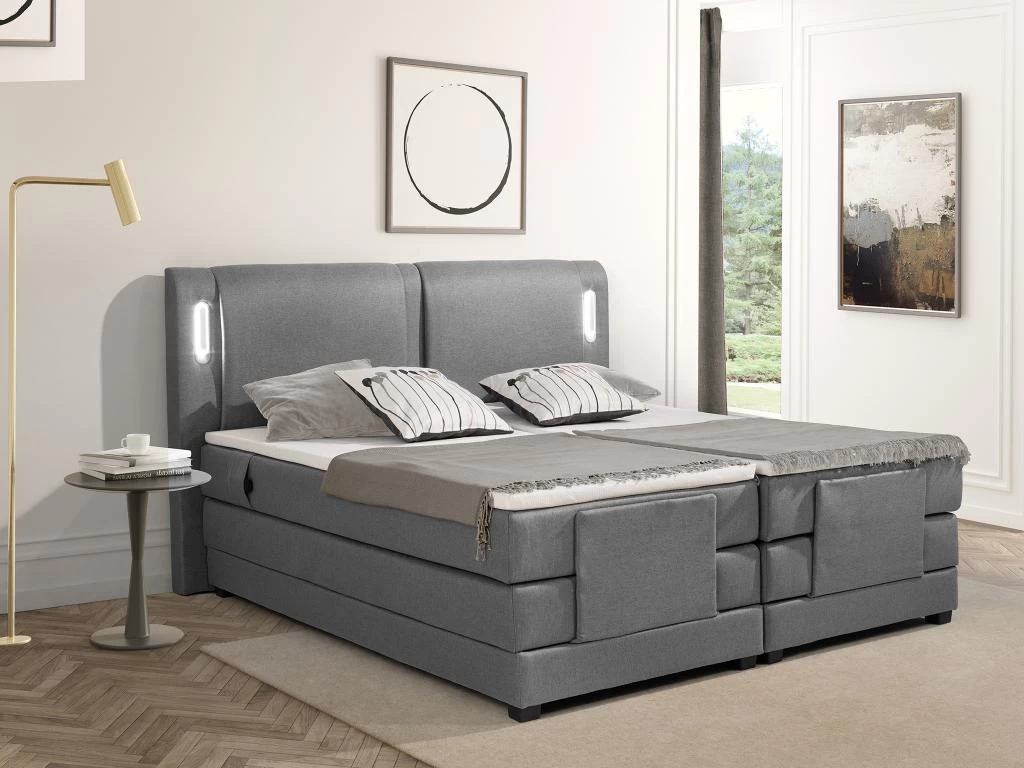 Avec ses sommiers de relaxation électriques, le boxspring ASTEMI vous permet d’ajuster votre position à tout moment pour un confort et un sommeil de qualité. Son petit plus ? Sa tête de lit avec LEDs intégrées, alliant praticité et esthétisme.