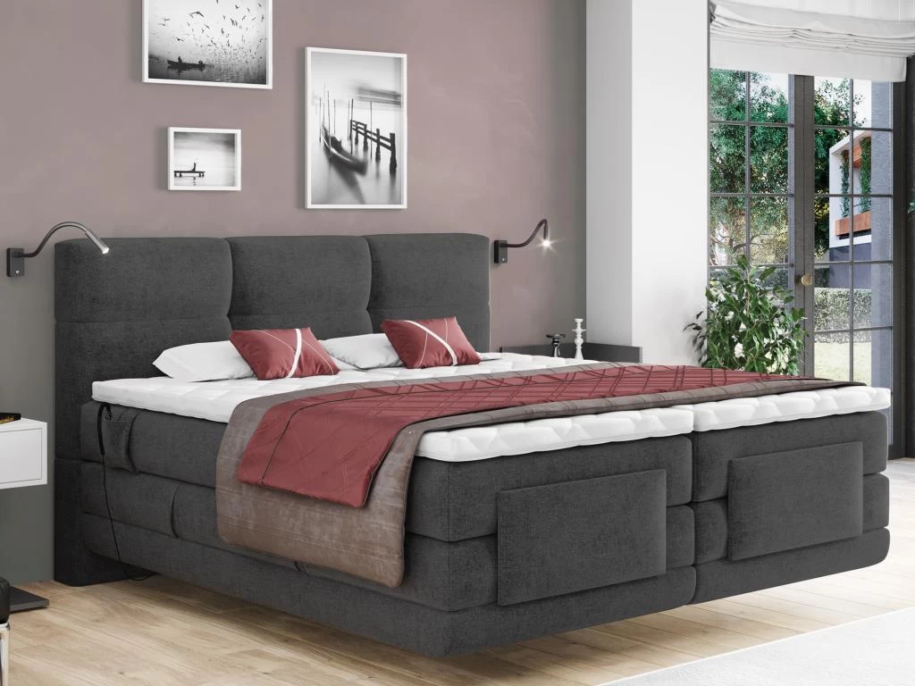 Succombez au confort exceptionnel du boxspring LODI ! Trouvez la position qui vous correspond avec ses sommiers de relaxation électriques indépendants et passez des nuits de qualité. Avec son aspect lit en lévitation et ses finitions déco, le boxspring LODI est idéal pour une chambre confortable et élégante, digne des plus grands palaces.