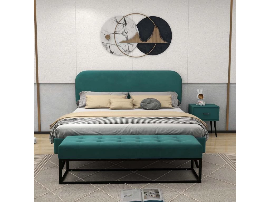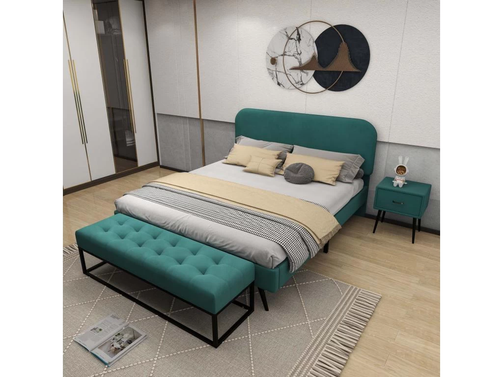 Avec les tissus en velours vert et la tête de lit rembourée, ce lit adulte possède une apparence spéciale et élégante, il s’adapte parfaitement à votre chambre à coucher ou chambre d’ami.