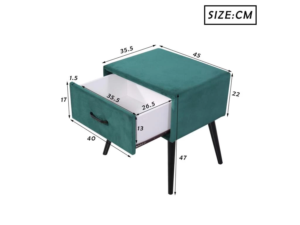 – Dimensions de la table de chevet : 45 x 35,5 x 47 cm