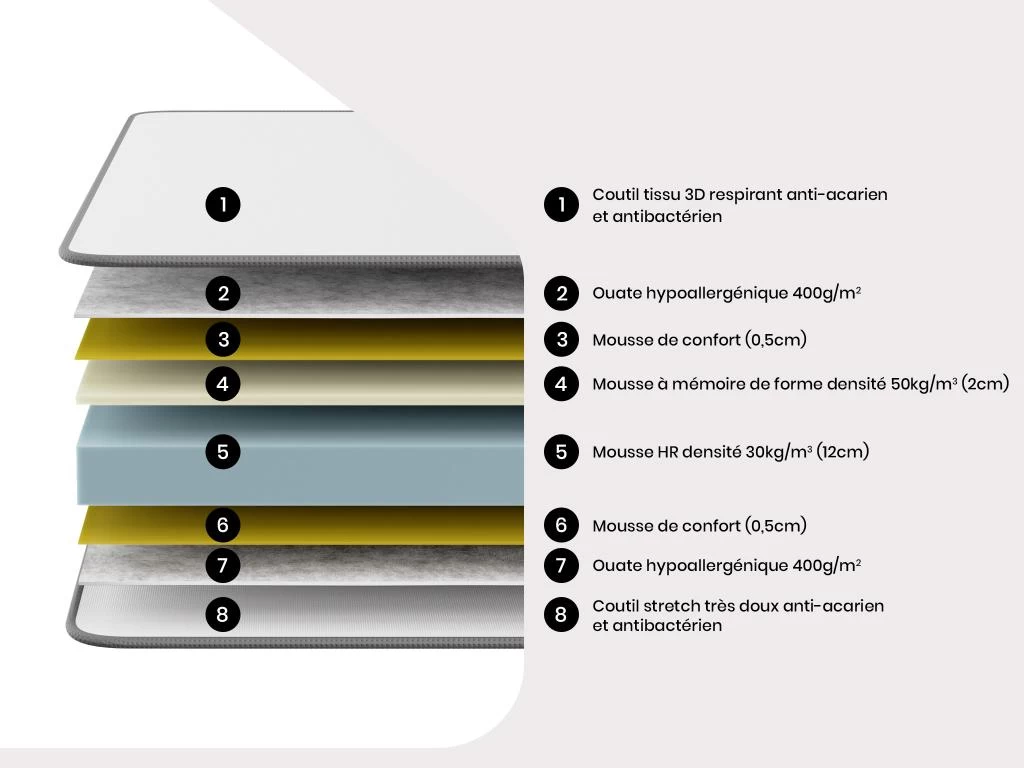 Bande latérale micro aérée sur le flanc de votre matelas pour une meilleure respirabilité et une meilleure évacuation de l’air et de l’humidité et ainsi une hygiène parfaite.