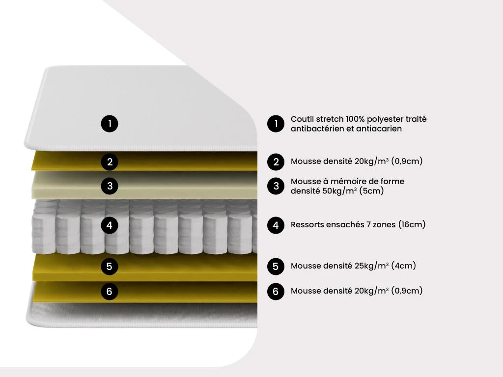 - Technologie matelas (zones) :