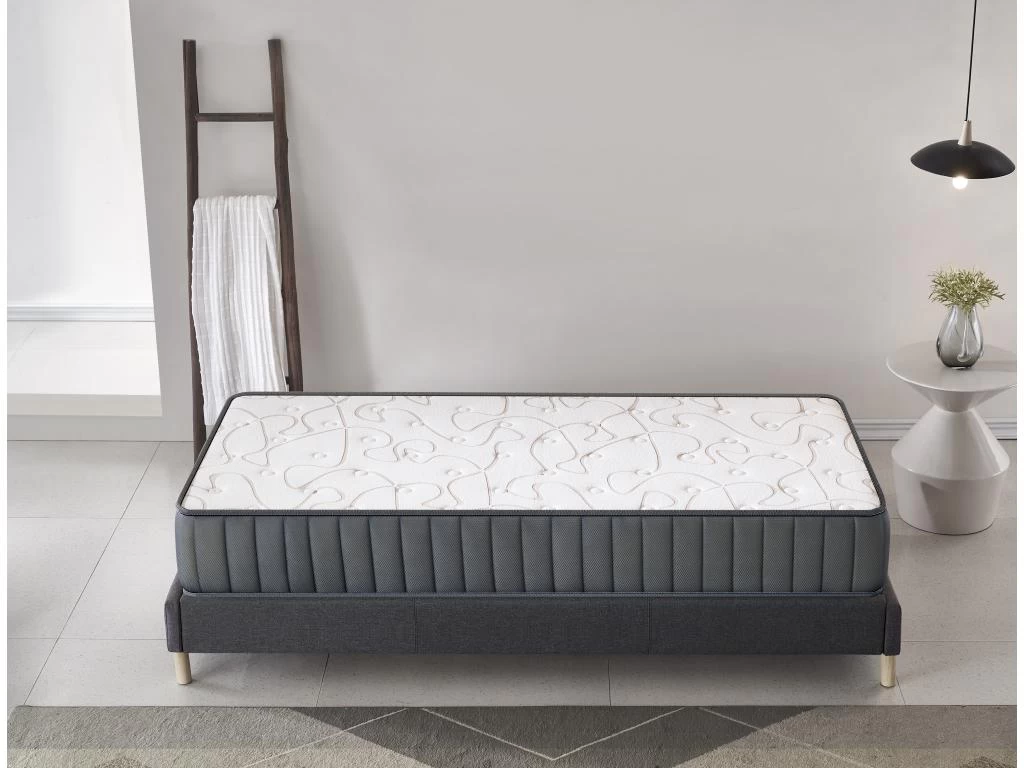 La partie supérieure du matelas composée de mousse haute densité alvéolée D35kg/m3 offre un confort aéré mais tonique à la fois. Un couchage enveloppant qui s’adapte progressivement à votre morphologie grâce à notre mémoire de forme Haute Densité 50kg/m3. L’accueil doux et le soutien tonique de ce matelas seront les meilleurs alliés de nuits agréables. !! Comme dans un nuage !!