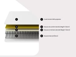 Ensemble Matelas Ressorts Ensachés + Lit Avec Tête De Lit 120x190cm-Epaisseur 20cm Accueil MousseHD