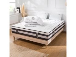 NUIT DE COTON | Ensemble SERENADE 160×200 Cm | Matelas Ressorts Ensachés + Sommier Bois | Ferme