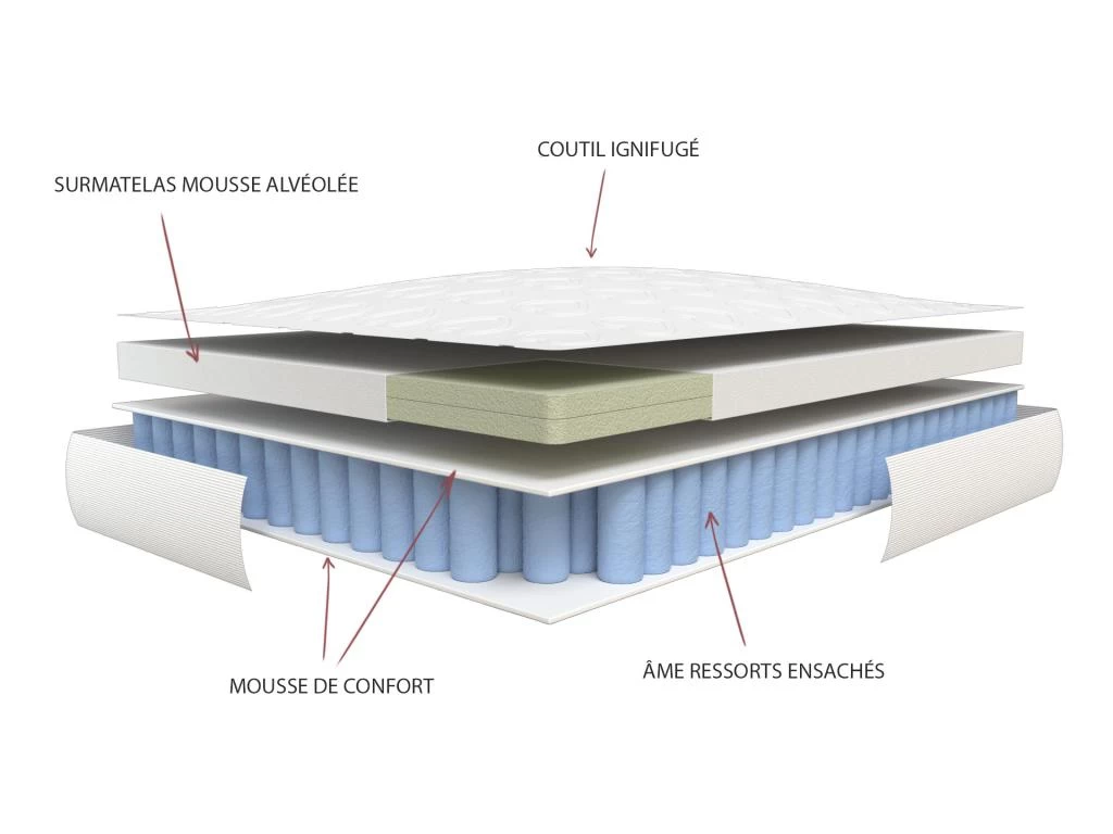 Ce matelas possède un coutil et un matelassage en mousse anti-feu, il est incombustible pour une plus grande sécurité.