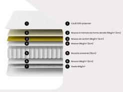Ensemble Sommier Et Matelas Ressorts Ensachés Et Mémoire De Forme ILLUSION De DREAMEA – 160 X 200 Cm