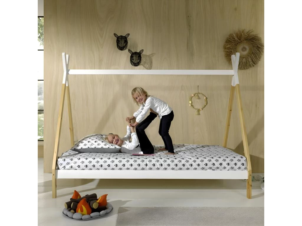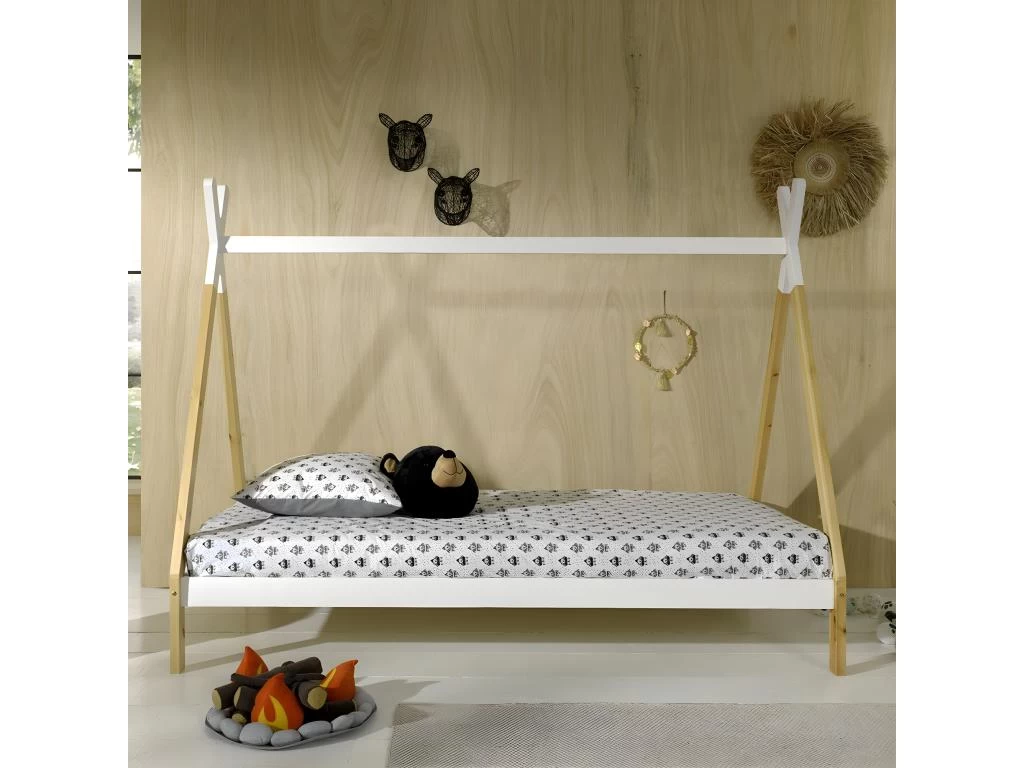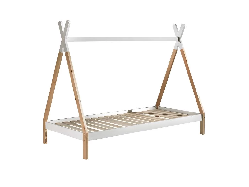 Lit 90x200cm Blanc et Pin Naturel en Forme de Tipi de la gamme Flitt.