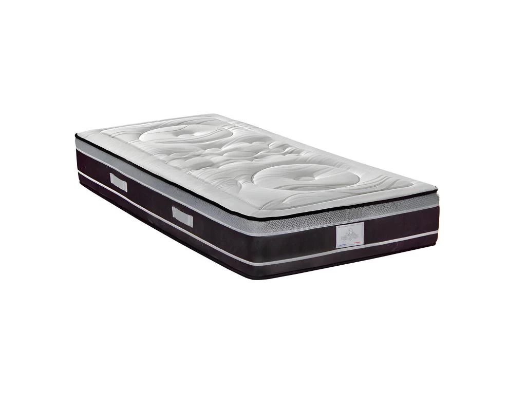 - Âme intérieure (CertiPUR) : 465 ressorts ensachés + 4 cm de mousse viscoélastique à mémoire de forme de 60 kg/m³ + 1,5 cm de mousse hypersoft + 1 cm de mousse de confort + 100 gr/m² de fibres PES