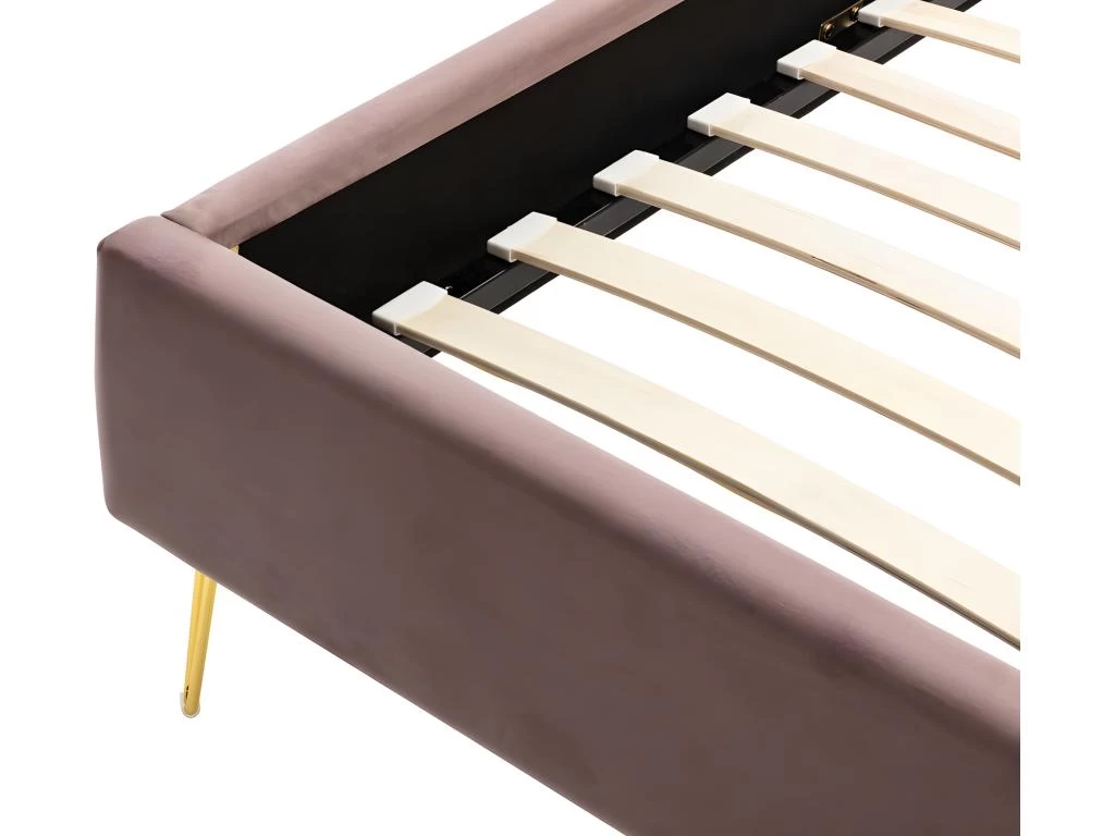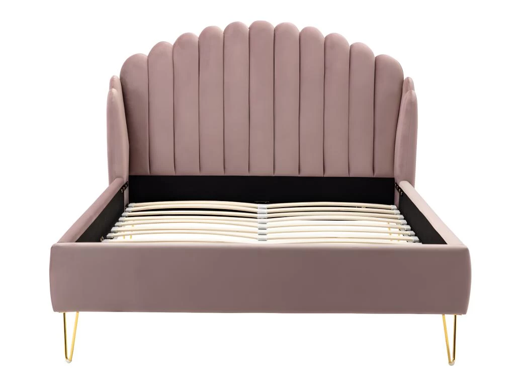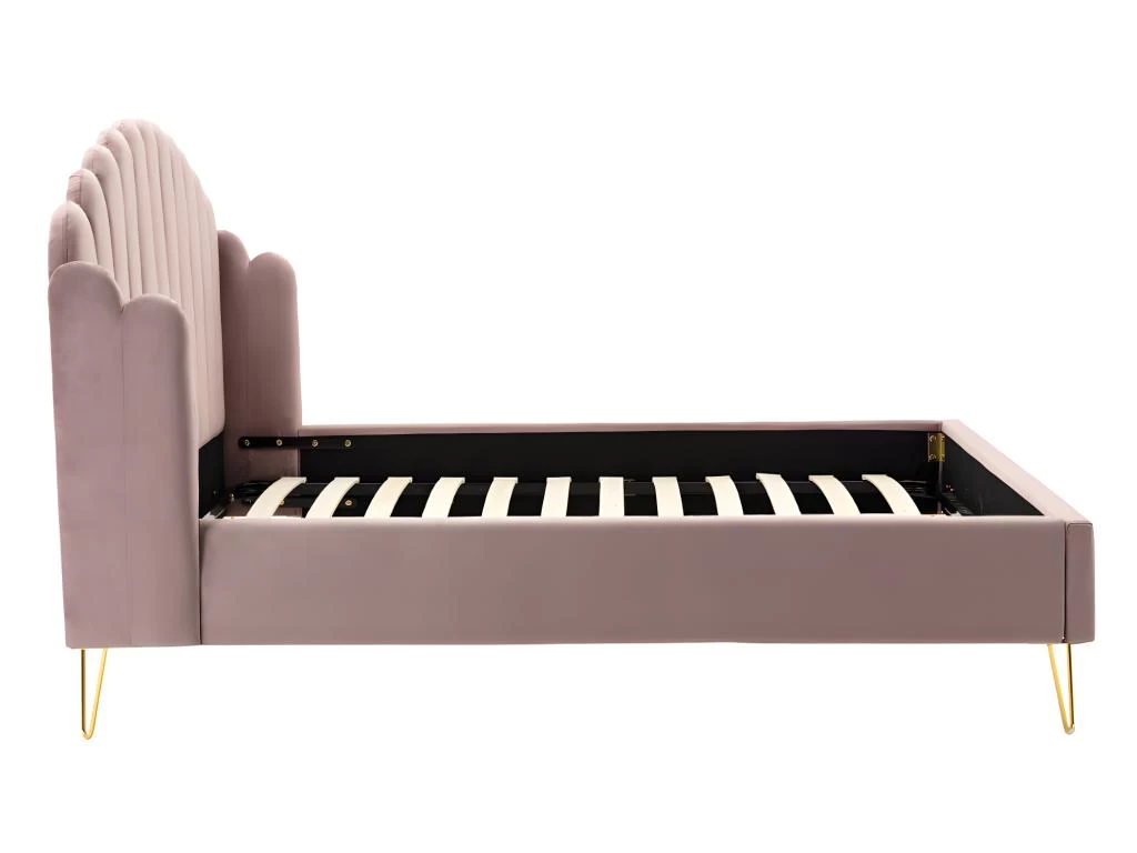 Apportez douceur et modernité à votre chambre grâce au lit SAGALI. Ses pieds en métal doré, sa structure en velours et sa tête de lit au charme romantique apporteront une touche vintage et unique à votre pièce.