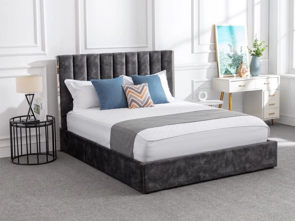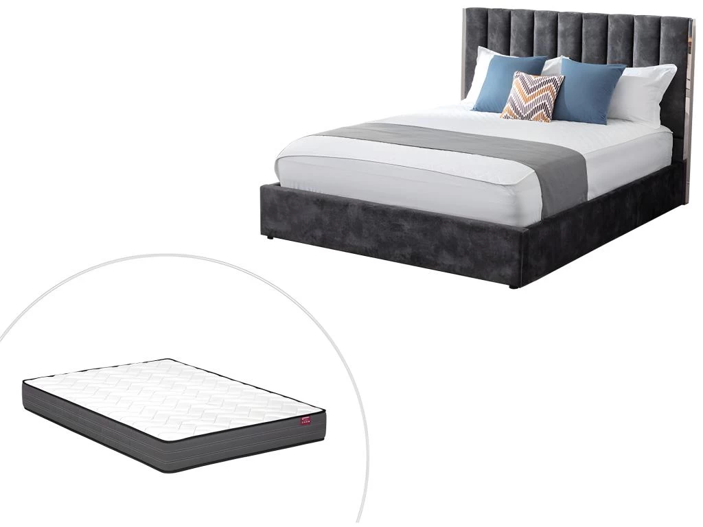 Avec sa tête de lit aux contours en métal argenté, le lit FEROYA apportera à votre chambre une touche d’originalité et d’élégance. Doté d’un revêtement en velours, ce lit créera également un cocon de douceur dans votre chambre parentale.