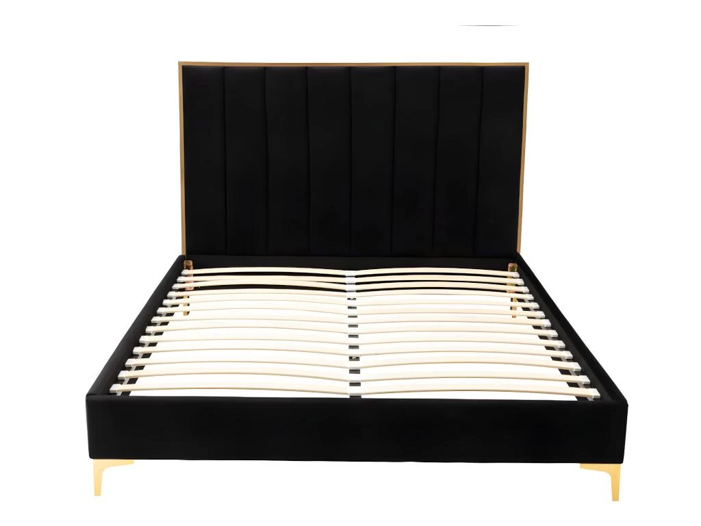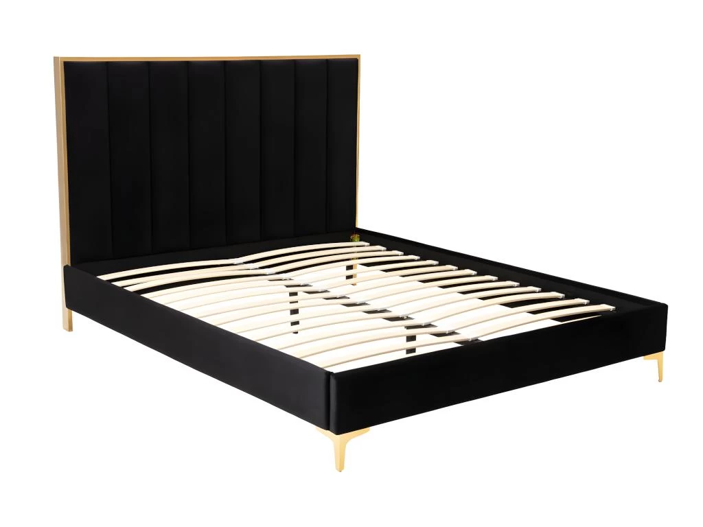 Glamour et sophistiqué, laissez vous tenter par le lit CLARISSE ! Son revêtement en velours et ses détails en acier doré apporteront à votre chambre une touche romantique et élégante.