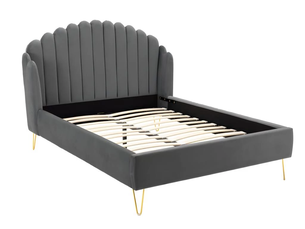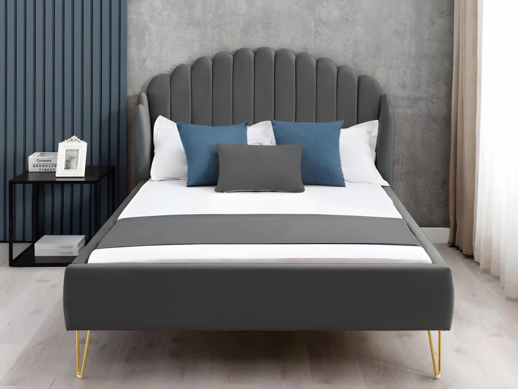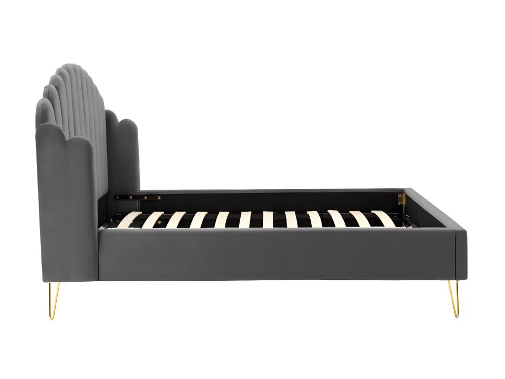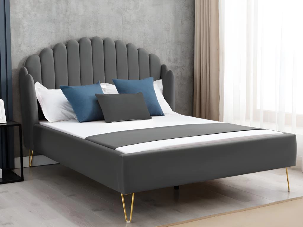 Apportez douceur et modernité à votre chambre grâce au lit SAGALI. Ses pieds en métal doré, sa structure en velours et sa tête de lit au charme romantique apporteront une touche vintage et unique à votre pièce.