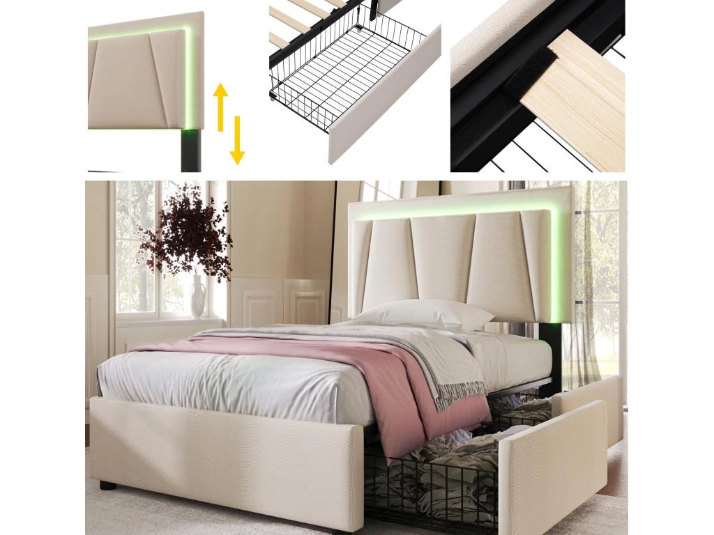 L’éclairage LED ajoute également un style moderne à votre chambre, avec la télécommande, vous pouvez changer les couleurs selon vos souhaits.