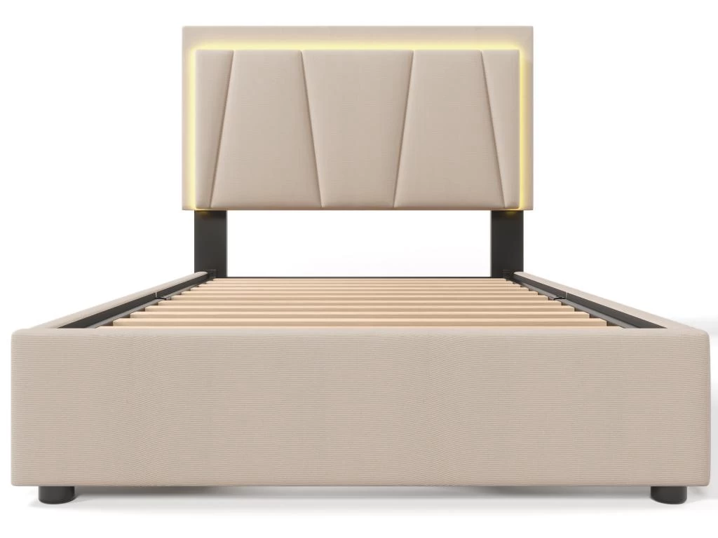 Avec les tissus en lin et les surpiqûres, ce lit simple 90×200 cm possède une apparence spéciale et élégante, il s’adapte parfaitement à votre chambre à coucher ou chambre d’ami.