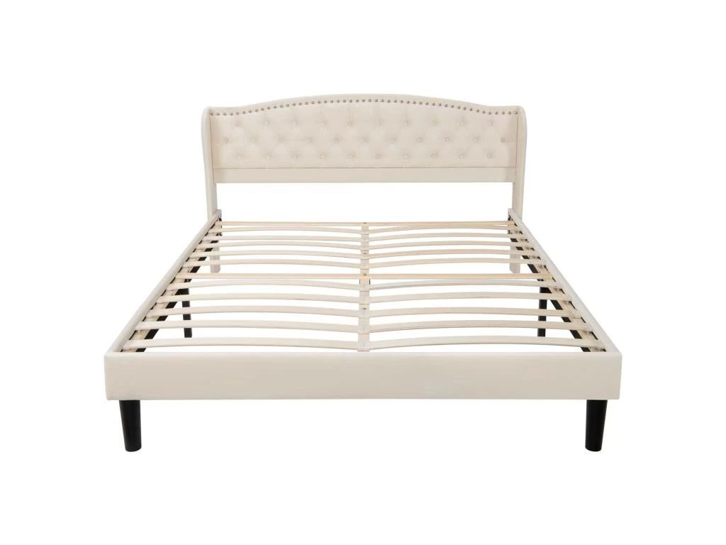 Avec les tissus en velours beige, la tête de lit à ailes, les rivets décoratifs et les surpiqûres en lonsage, ce lit adulte 160×200 cm possède une apparence minimaliste mais élégante, il s’adapte parfaitement à votre chambre à coucher ou chambre d’ami.