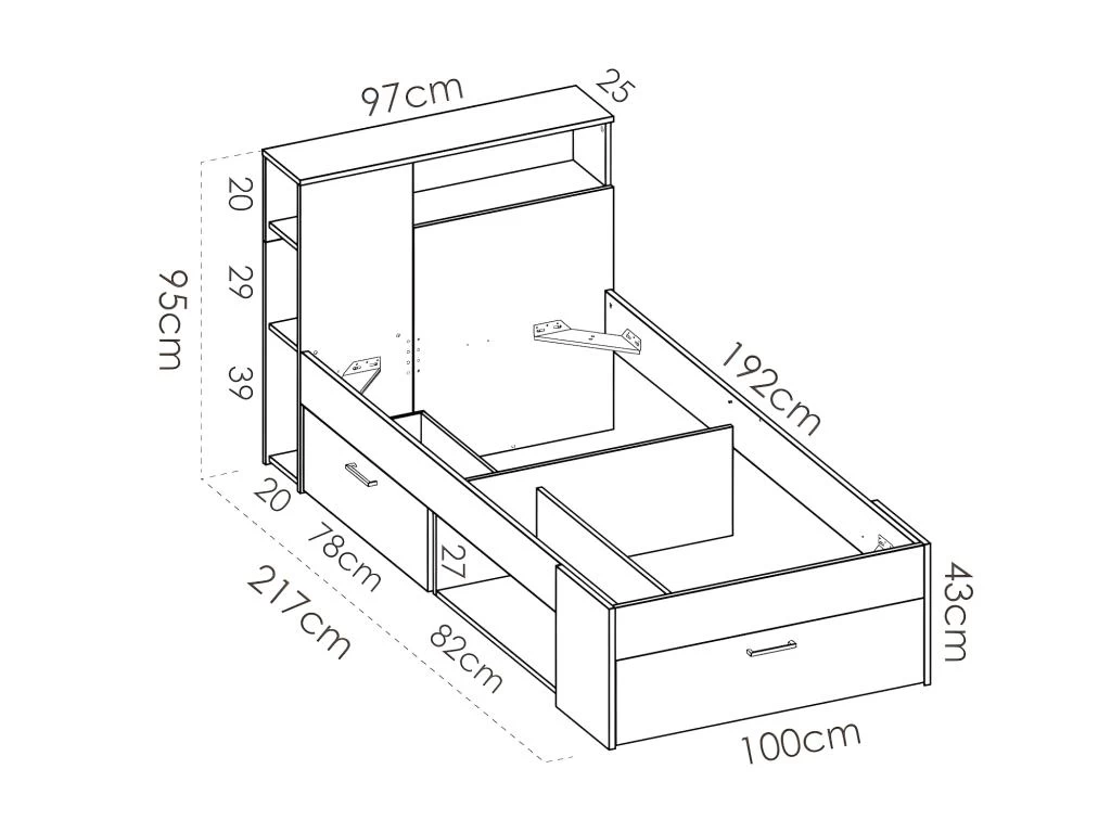 Avec sa tête de lit composée de rangements, ses 2 tiroirs, ses 2 niches latérales et son coffre en bout de lit, le lit LEANDRE allie l’utile à l’agréable en vous permettant de ranger vos livres, votre linge de lit, vos vêtements et bien d’autres choses.