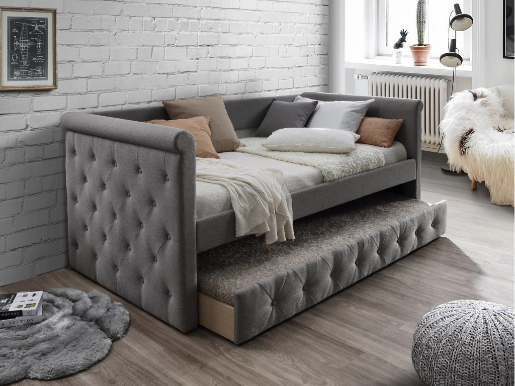 Ce très beau lit 1 place offre un design de charme, avec ses angles arrondis et son capitonnage. Très pratique, il dévoile un deuxième couchage en un tour de main, pour accueillir tous les amis !