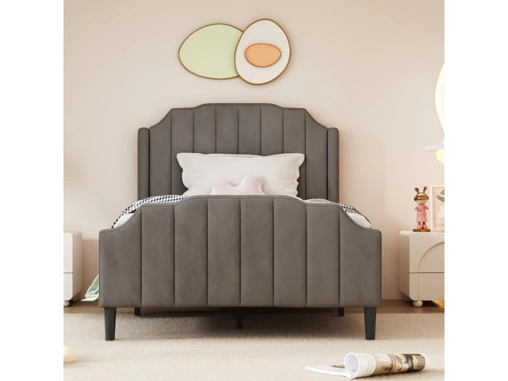 La tête de lit en forme spéciale, le tissu en velours et les coutures surpiquées donnent ce lit simple 90×200 cm un style minimaliste mais élégant.
