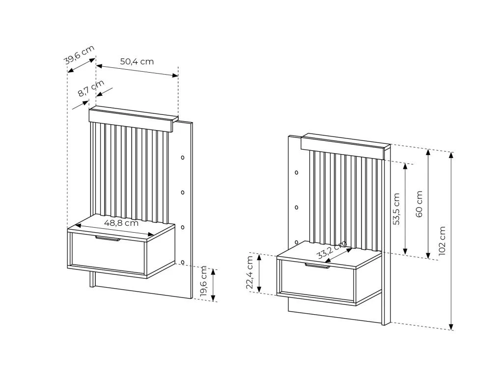 - Tiroir : L39,9 x P28,4 x H12 cm