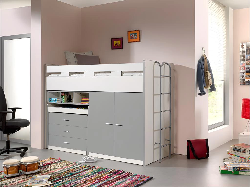 Lit combiné 70 90×200 Sommier Inclus Vipack Bonny – Gris