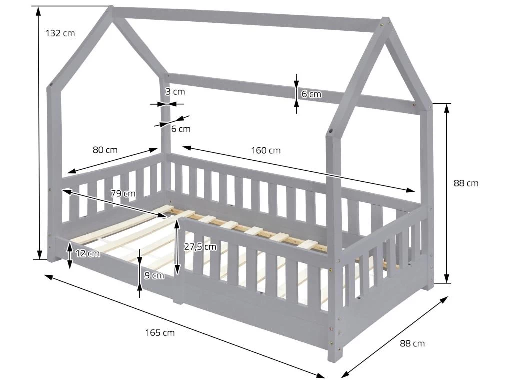 Ce magnifique lit d’enfant en bois est la parfaite petite oasis de bien-être pour ta progéniture. La protection contre la chute assure une sécurité suffisante pour que tu puisses toi aussi dormir en toute tranquillité la nuit. De plus, le lit d’enfant dispose d’un solide sommier à lattes. Ce superbe lit d’enfant est complété par une structure de toit. Tu peux par exemple y tendre une moustiquaire ou/et y accrocher un carillon en combinaison avec une guirlande lumineuse LED. Les possibilités sont infinies pour créer un environnement ludique dans lequel l’imagination de votre enfant peut s’épanouir. Adaptez le lit à la personnalité de votre petit !