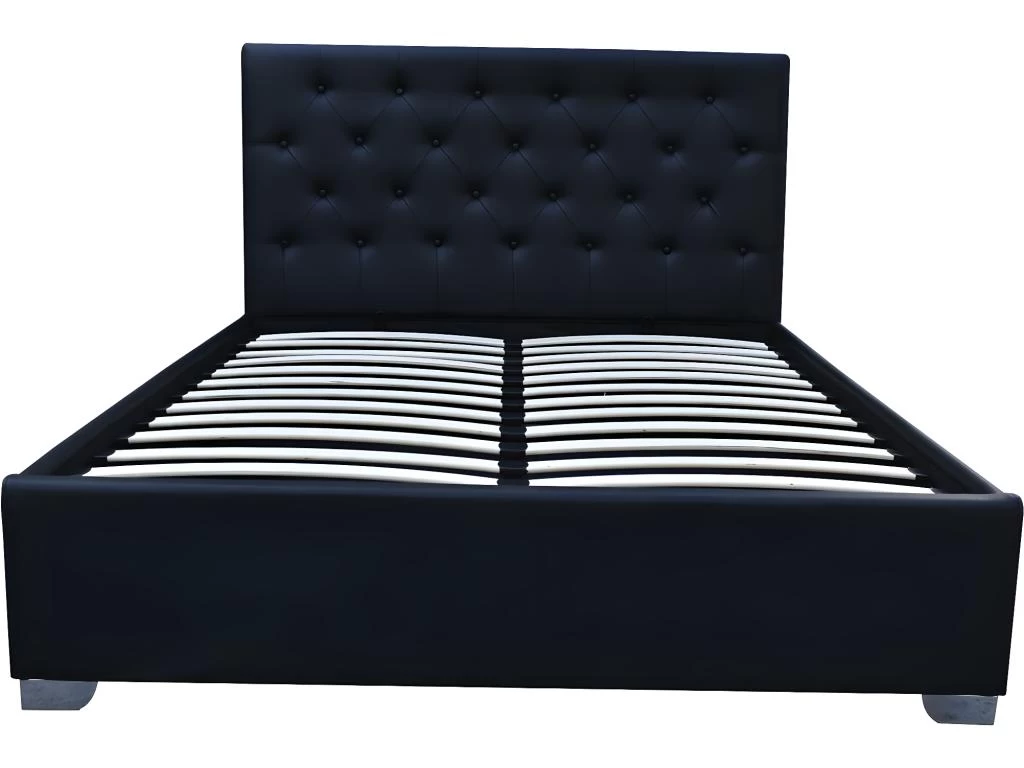 Descriptif : Lit double avec coffre – 140 x 190 cm Tête de lit et pied de lit en PVC inclus Matelas non fourni Poids maximum supporté : 240 kg.