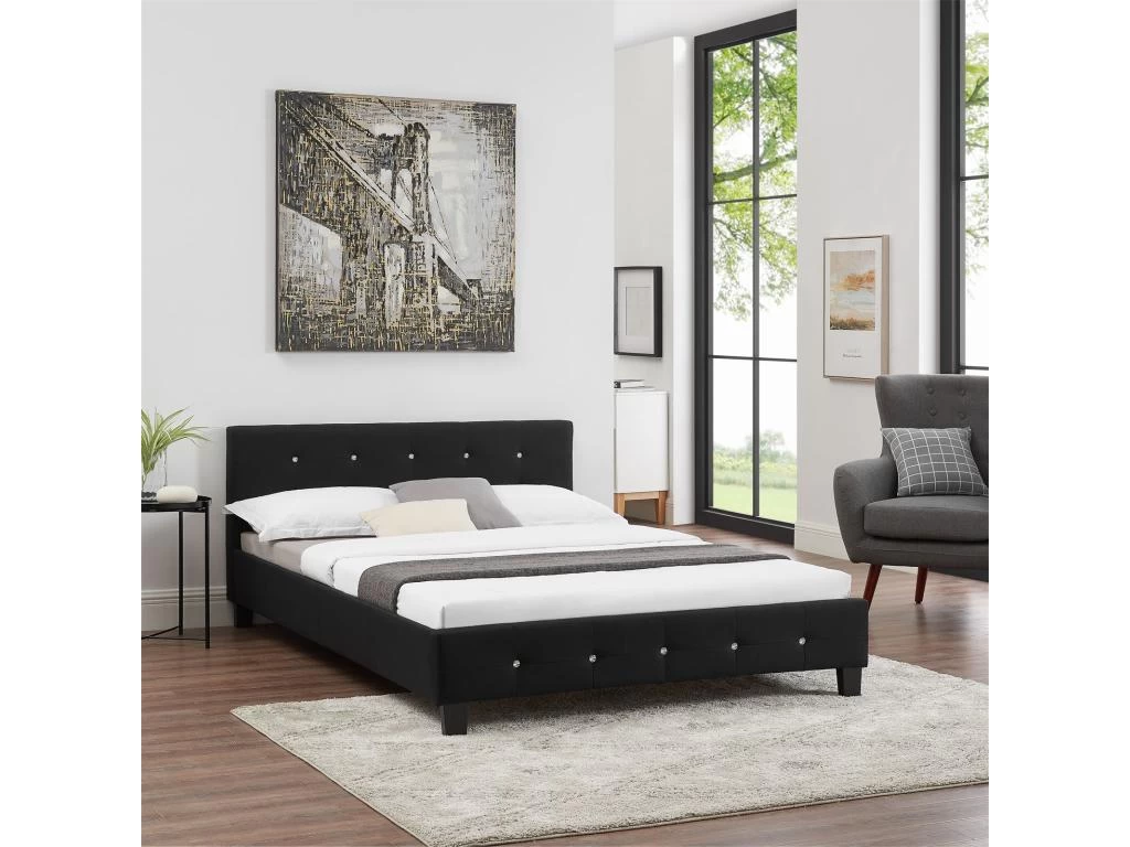 – Le cadre du lit est revêtu d’un tissu de coloris noir.