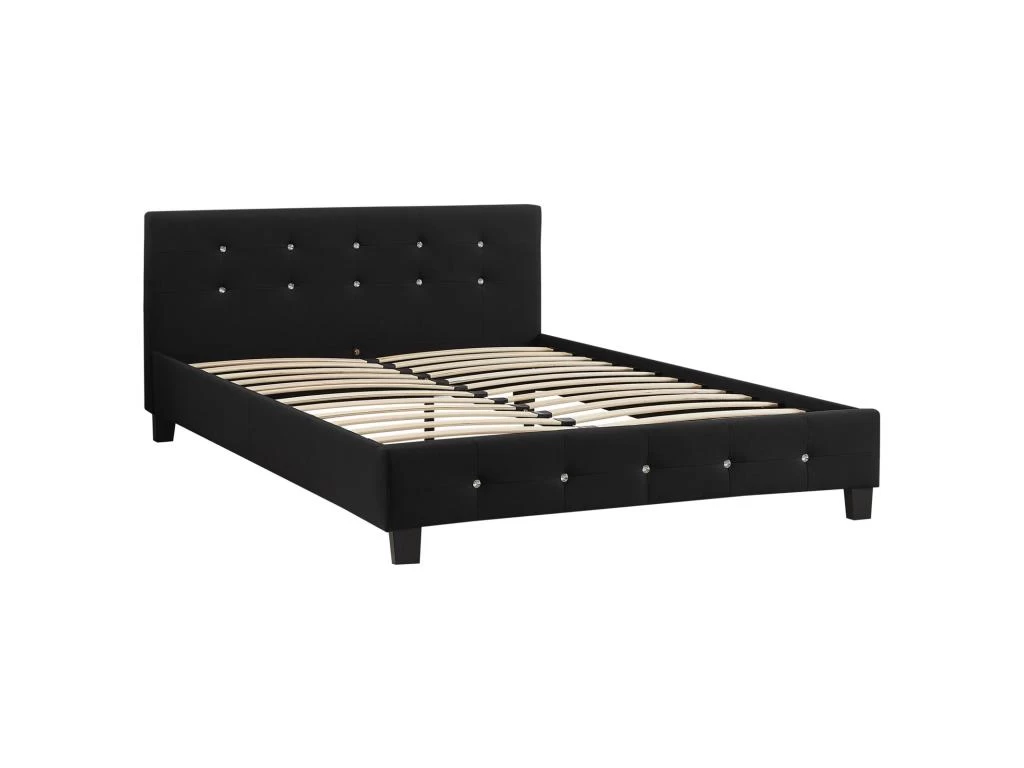 … est très engageant grâce à son aspect moelleux et accueillant obtenu par le rembourrage généreux de sa structure au revêtement capitonné. Les pierres brilliantes qui le décorent vous donneront l’impression de dormir dans un lit royal et attireront tous les regards. La stabilité du lit est assurée par 4 pieds robustes et renforcée par la présence d’une traverse centrale et de 2 pieds de soutien supplémentaire sous le sommier à lattes, ce dernier est inclus dans la livraison.