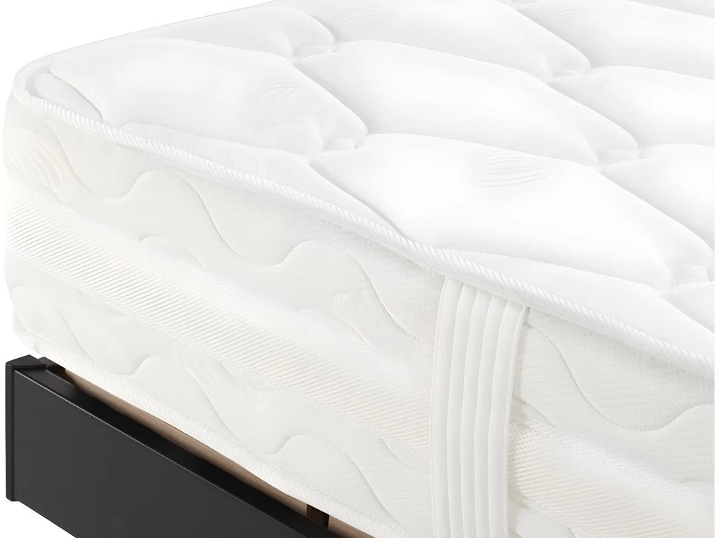 Technique de pointe en matière de ressorts; chaque ressort est emballé dans une enveloppe fermée lui permettant de bouger individuellement et offrant ainsi un soutien point par point très précis et une excellente indépendance de couchage