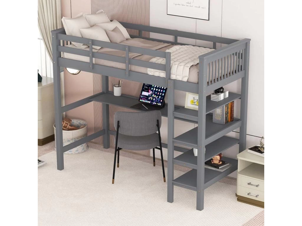 Ce lit mezzanine est conçu en pensant à la fois à l’efficacité de l’espace et à l’expérience de sommeil. Le lit mezzanine est associé à un bureau et une étagère utilisables pour vous offrir un endroit où dormir et étudier, avec également un grand espace de rangement. Ce serait un excellent choix pour la chambre.