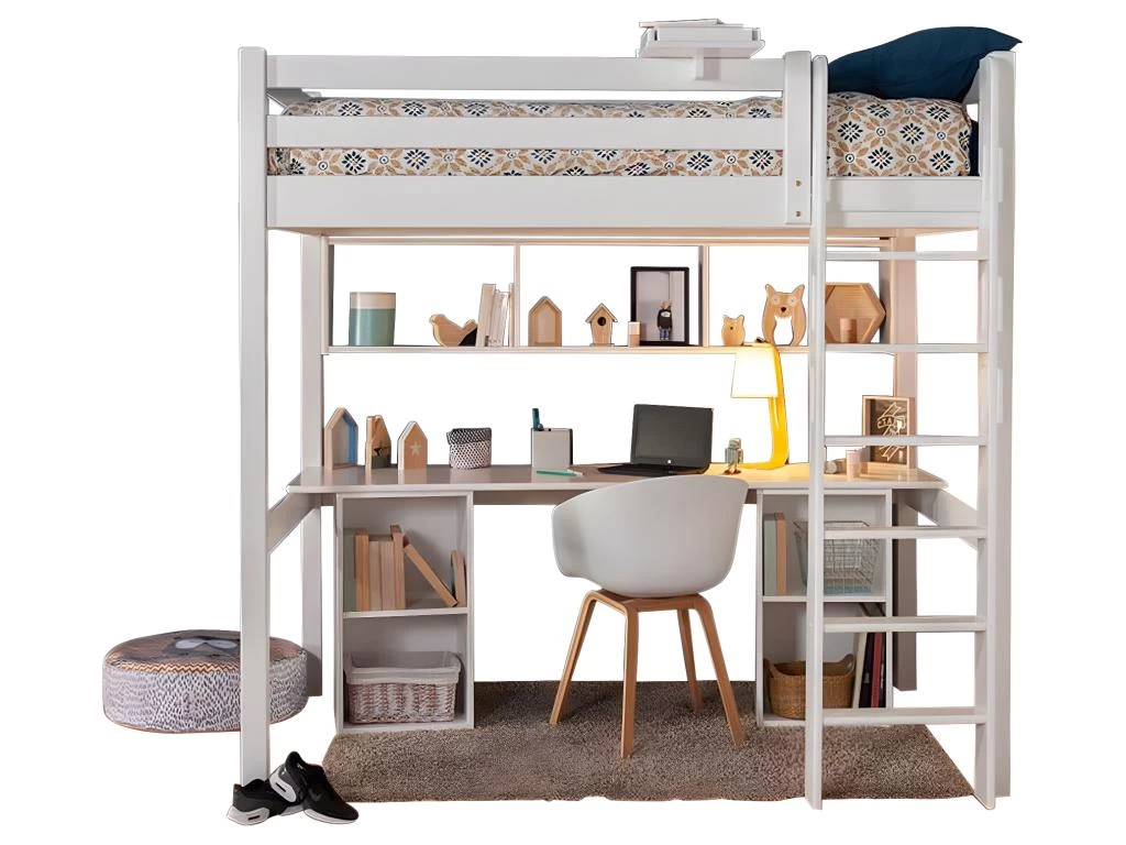 Bureau pour lit mezzanine inclus : couleur au choix : blanc ou Bois naturel