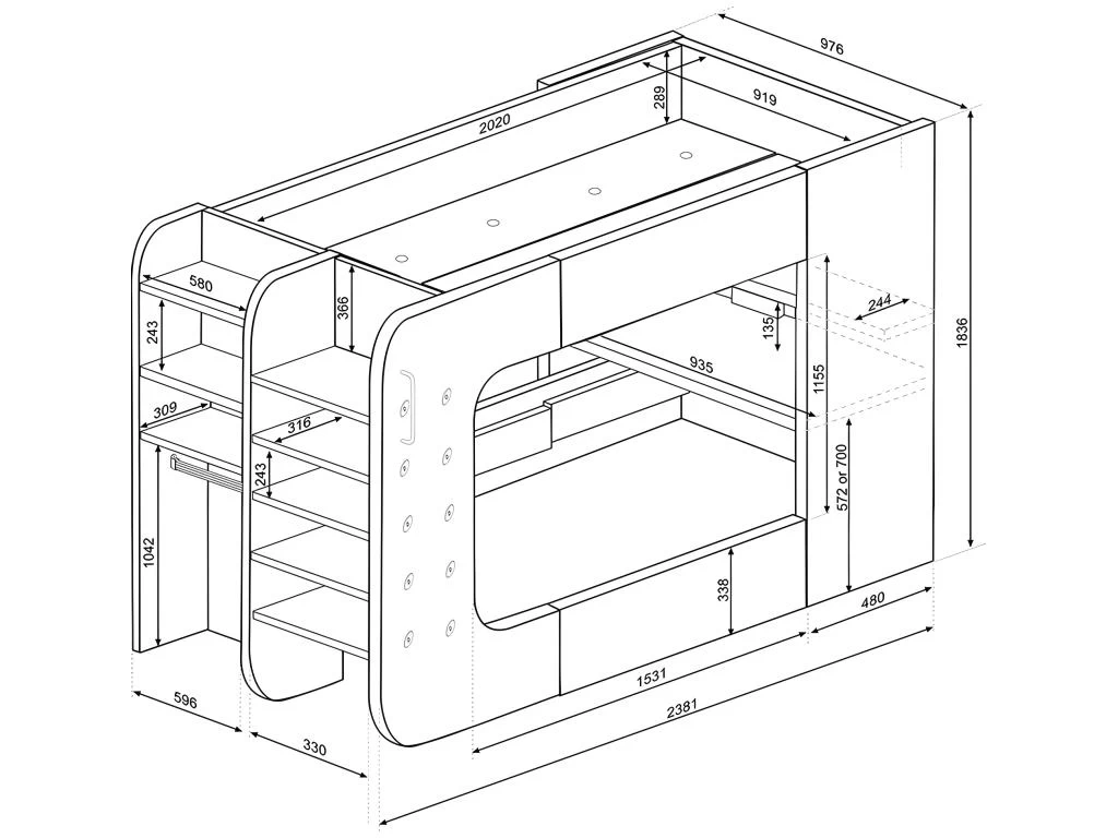 Imaginé pour vous permettre d’optimiser au maximum votre espace, le lit WARRIOR est composé d’un bureau avec LEDs mais également d’un espace de rangements, idéal pour y disposer vos habits ou bien vos accessoires de jeux.