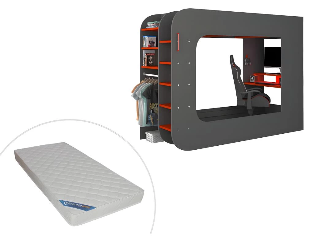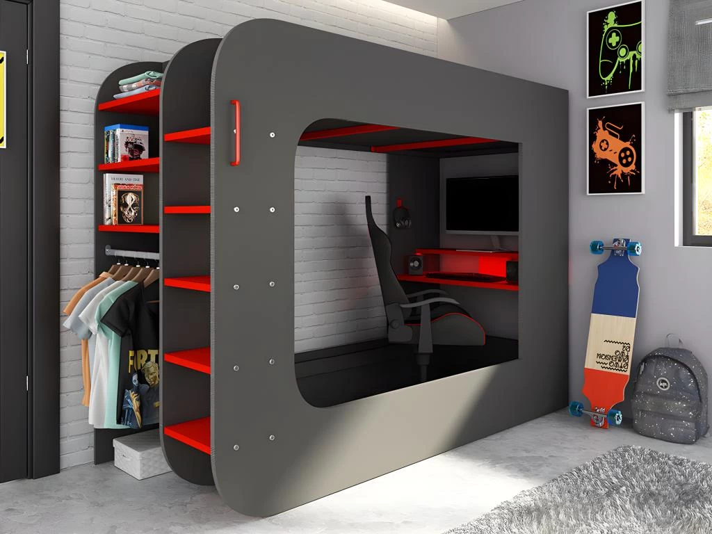 Laissez-vous séduire par la couleur anthracite et rouge de ce lit qui vous plongera sans aucun doute dans un univers parallèle !