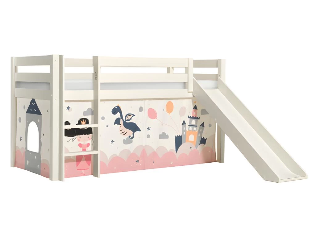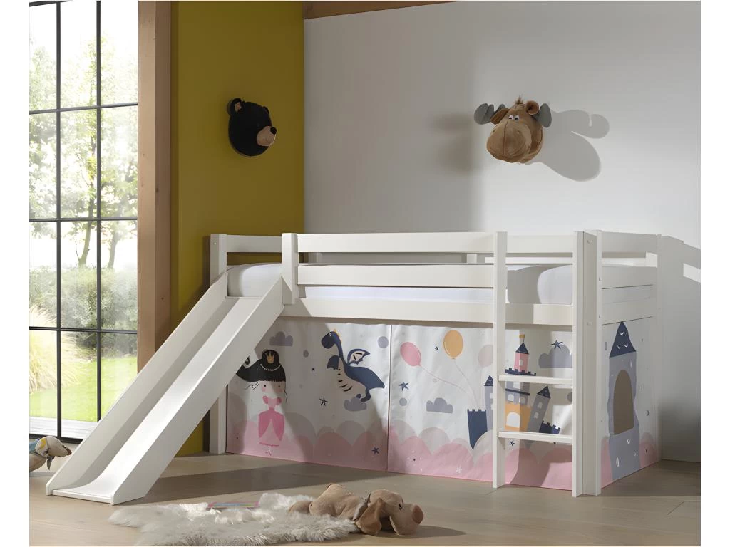 Conditionnement : Lit 90×200 livrĂ©, avec sommier, avec textile, avec toboggan et sans matelas Ă monter, avec notice incluse.