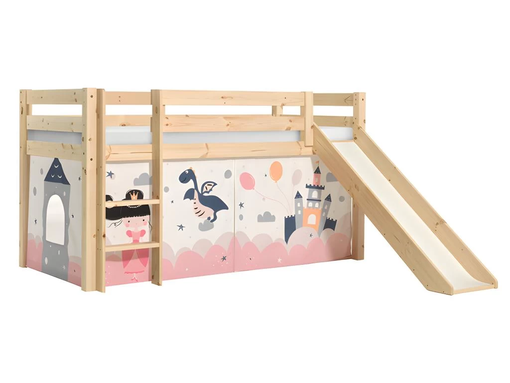 Conditionnement : Lit 90×200 livré, avec sommier, avec textile, avec toboggan et sans matelas à monter, avec notice incluse.
