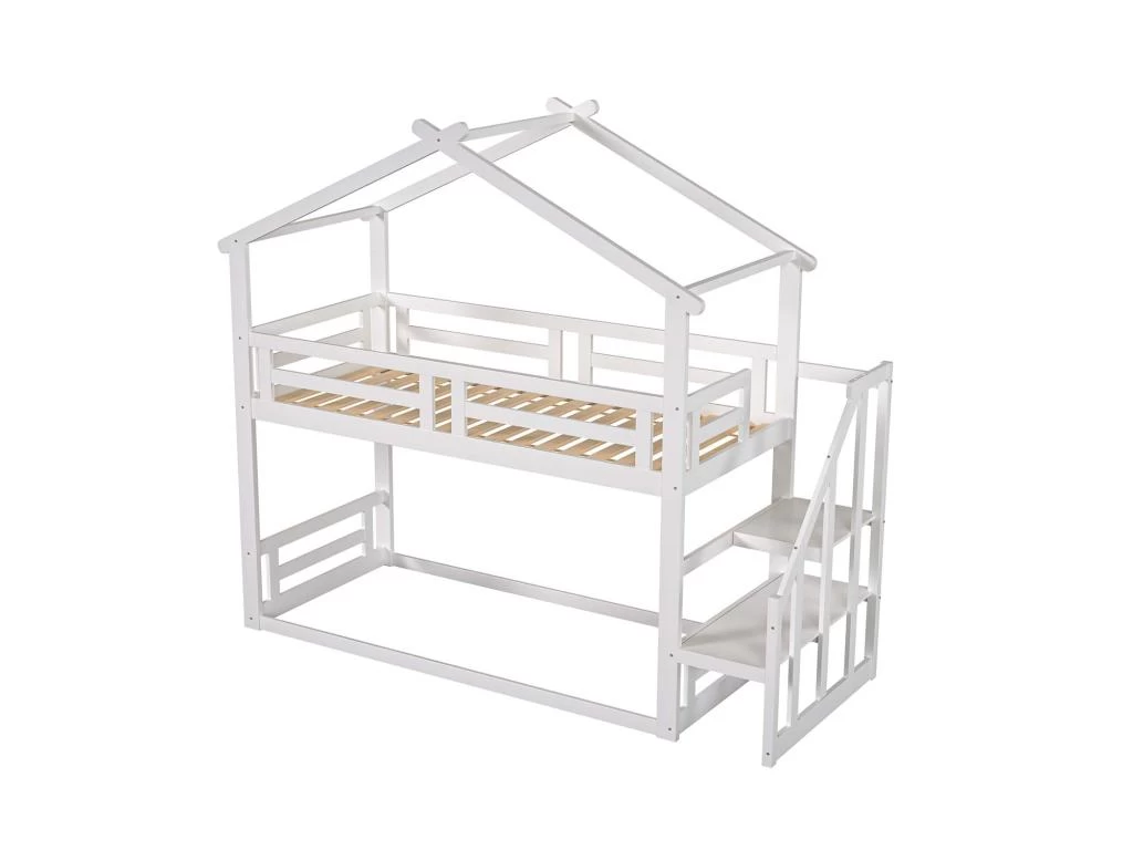 Avec la cabane et l’escalier, ce lit superposé possède une apparence minimaliste et il crée une atmosphère de conte de fées pour vos enfants.