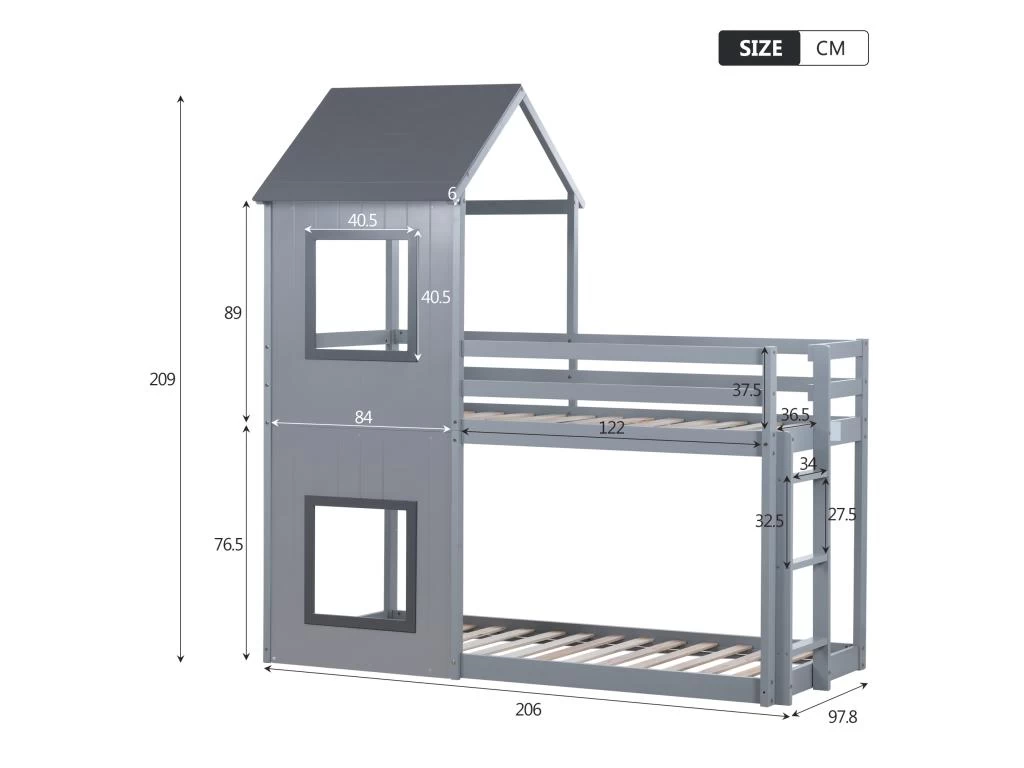 Le lit superposé est équipé d’une barrière de sécurité qui constitue un endroit sûr et fiable pour dormir. Il est plus confortable d’essayer de grimper l’escalier de 3 marches, et vous pouvez être sûr que vous grandissez à chaque pas.