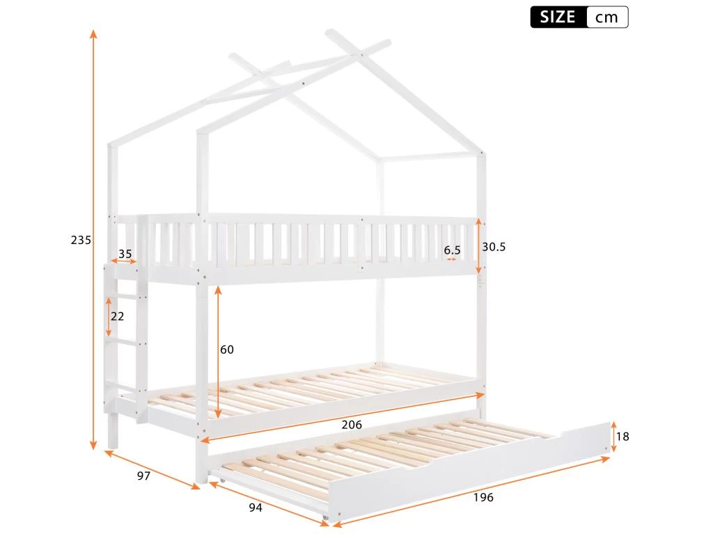 Conversion facile – Ce lit superposé peut être configuré en trois lits simples séparés. Il y a un lit gigogne au niveau inférieur du lit, idéal pour accueillir des invités ou des familles avec plusieurs enfants.