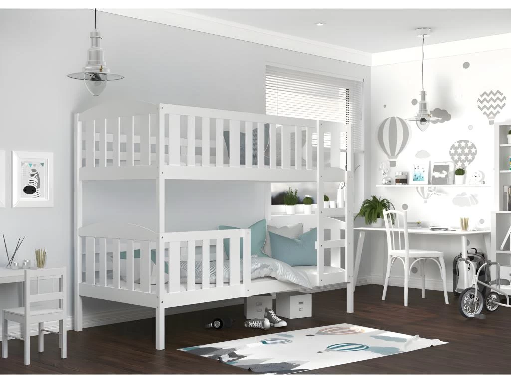 LIT SUPERPOSÉ LEO 90×190 livré avec 2 sommiers. Ce lit s’intègre parfaitement dans toutes les chambres d’enfant, grâce à un design simple et moderne. Ce lit superposé se distingue par ses jolies formes et des couleurs vives. Ce genre de lit convient aussi bien à un enfant, à partir de 3 ans, qu’à un adolescent, grâce à sa barrière de sécurité supplémentaire qui protège des chutes de jeunes enfants. Le meuble en BOIS et MDF lui garantit une bonne durée de vie. Modulable : séparable en deux lits indépendants et une échelle positionnable à gauche ou à droite. Nos lits sont fournis dans les colis en carton, en pièces détachées pour l’auto-assemblage. Attention les matelas ne sont pas fournis avec le lit.